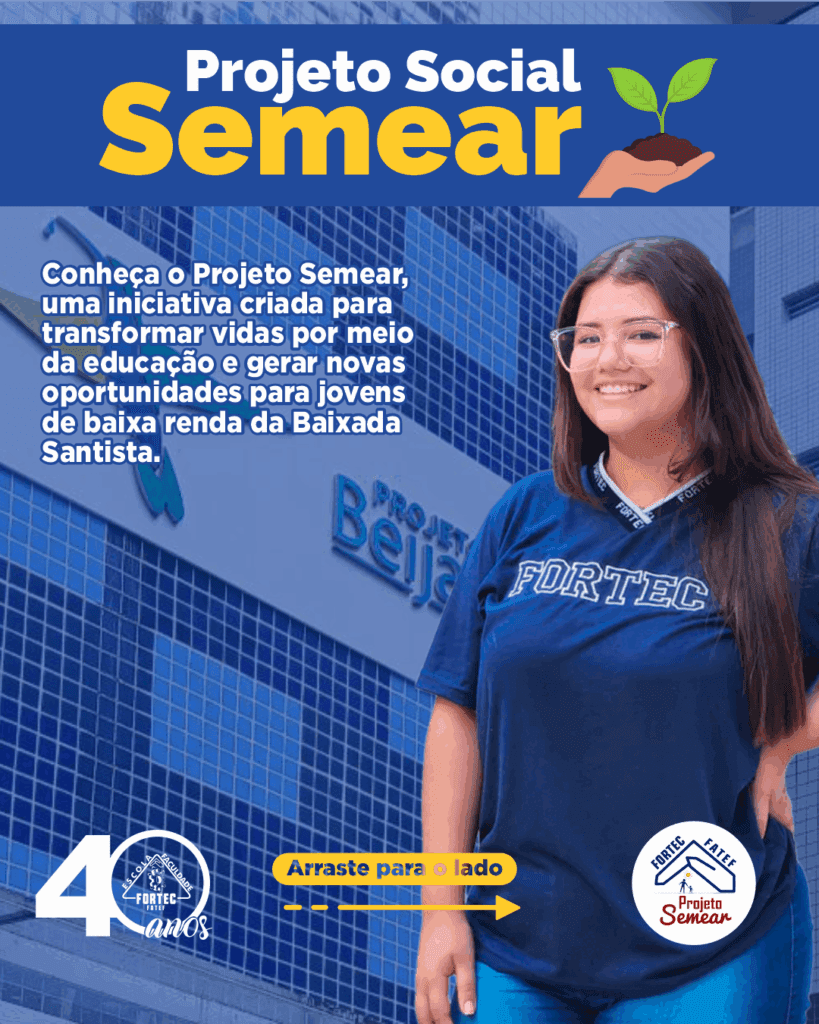 Por meio do Projeto Social Semear, criado em 2005 com iniciativa da Fortec, jovens têm acesso a oportunidades reais de crescimento.