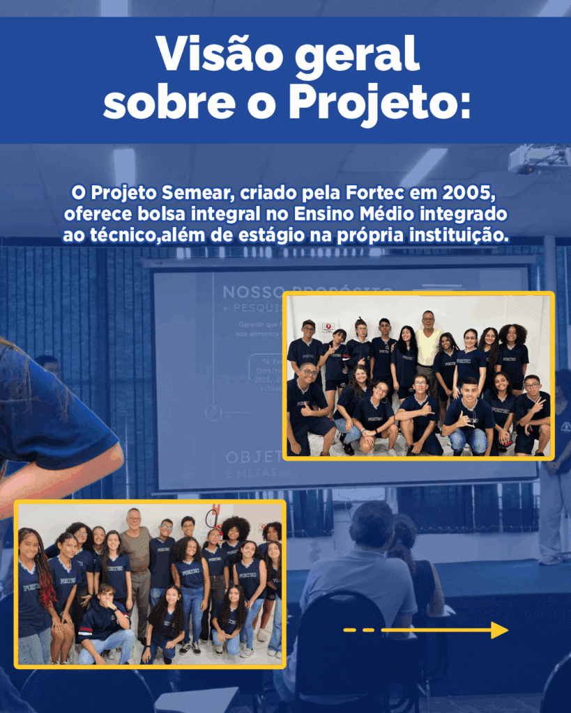 Uma vez ao ano o projeto abre seleção de bolsa 100% para cursar o Ensino Médio integrado ao Técnico na Fortec, além de aulas complementares e oportunidade de estágio.