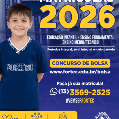 Na Fortec, oferecemos: Educação Infantil e Ensino Fundamental: opções de integral, semi-integral e meio período. Ensino Médio/ Técnico nas áreas: